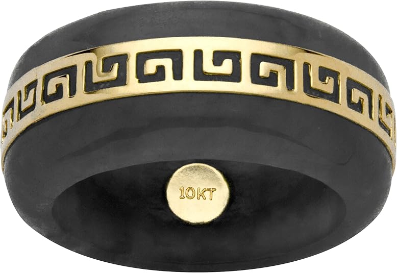 PalmBeach Jewelry 10K Yellow Gold Black Jade Greek Key Ring