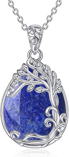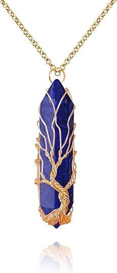 VIBILIA Healing Crystal Necklace Tree of Life Wire Wrapped Lapis Natural Stone Point Pendant Necklace