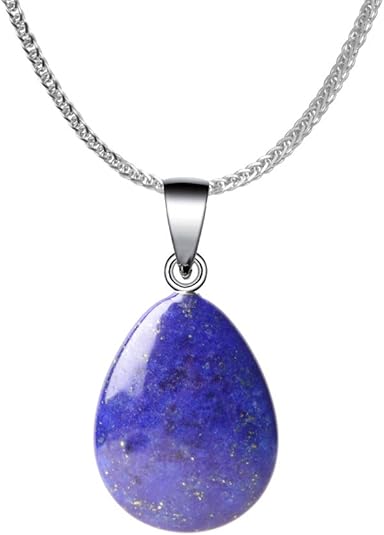iSTONE Natural Lapis Gemstone Pendant Necklace with 17.8" 925 Sterling Silver Chain
