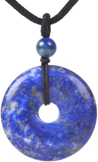 JUST IN STONES Lapis Gemstone 30mm Donut Beads Reiki Chakra Pendant Necklace Handmade