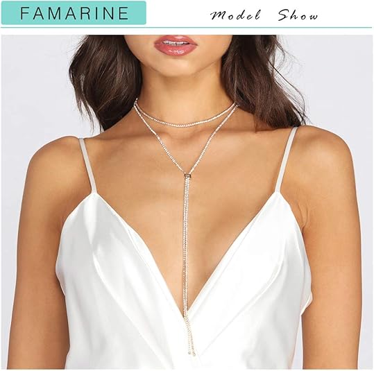 Jovono Rhinestone Choker Necklaces Silver Sparkly Necklace Long