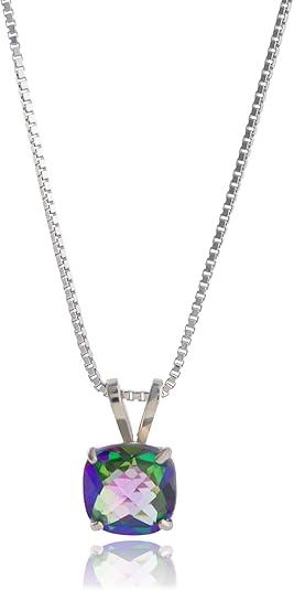 MAX + STONE 925 Sterling Silver 6mm Cushion Cut Mystic Topaz Solitaire Pendant Necklace