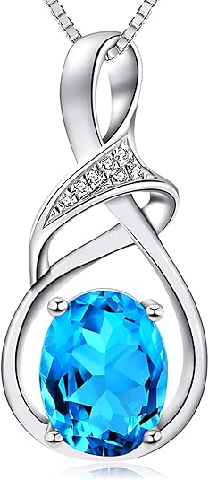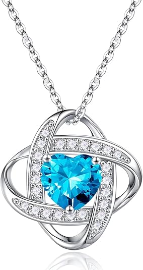 Iefil 925 Sterling Silver Love Knot Natural Blue Topaz Birthstone Necklace