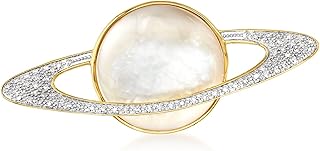 Ross-Simons Mother-Of-Pearl and .20 ct. t.w. Diamond Planet Pin in 18kt Yellow Gold Over Sterling Silver